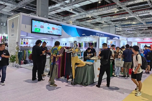 “疫情之前,我們已連續(xù)多年參加這一展會,但這是我們首次與產(chǎn)業(yè)鏈兄弟企業(yè)抱團參展。得益于晉江市泳裝產(chǎn)業(yè)協(xié)會的組織,這次晉江泳裝企業(yè)以統(tǒng)一形象亮相,效果非常理想?!钡旅佬虏牧峡萍迹ǜ=ǎ┯邢薰究偨?jīng)理蔡景潤告訴記者,協(xié)會選擇的位置靠近流通通道,人流量大,因此效果很不錯。