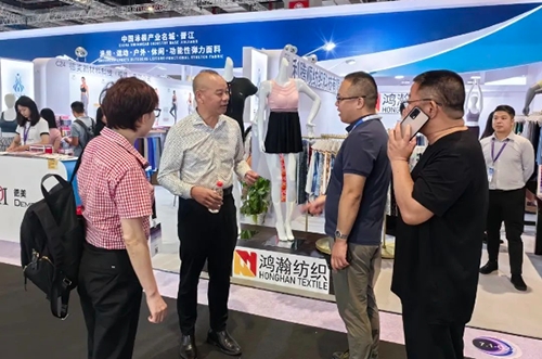 蔡景潤表示,公司此次主要展示運動瑜伽面料、再生面料、特殊后整理面料等。其中,再生面料、功能性瑜伽面料受到了許多歐美客戶的問詢。