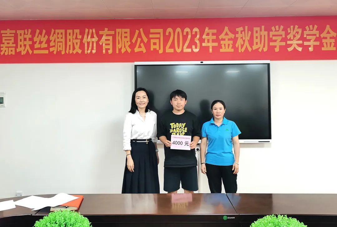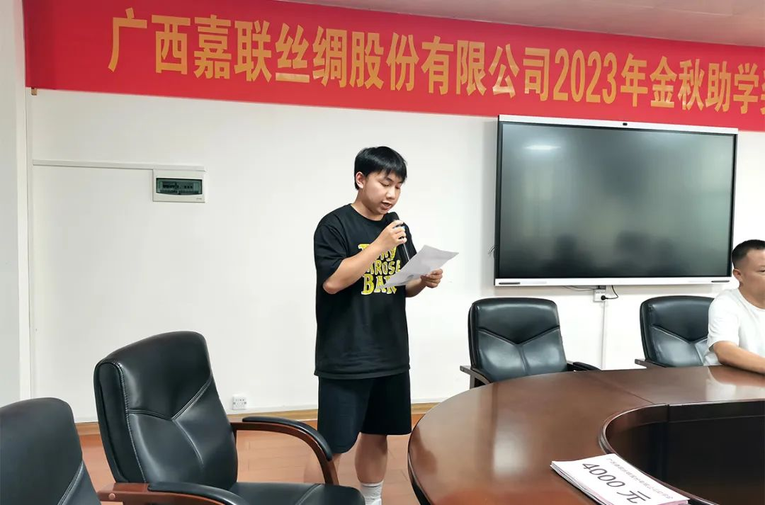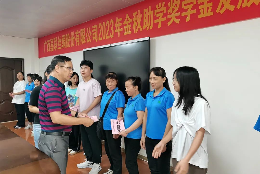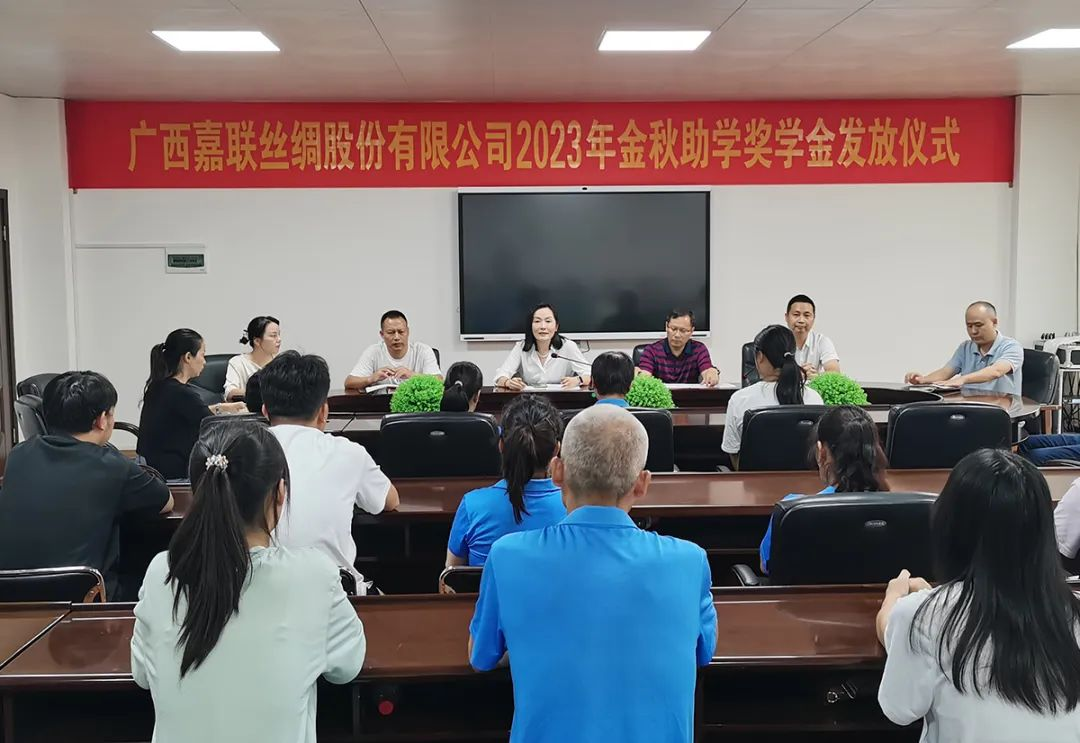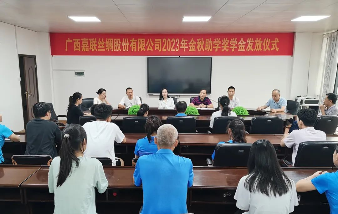 2023年8月30日,廣西嘉聯(lián)絲綢股份有限公司在四樓會議室舉行2023年金秋助學(xué)獎學(xué)金發(fā)放儀式,今年共有12名嘉聯(lián)員工子女被高等院校錄取獲得公司獎學(xué)金資助。