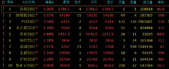 午盤收盤,國內(nèi)期貨主力合約漲跌不一。焦煤(1772, 0.50, 0.03%)漲超5%,丁二烯橡膠(14355, -40.00, -0.28%)(BR)、PTA(6300, 66.00, 1.06%)、苯乙烯(EB)漲超3%,焦炭(2431, 2.00, 0.08%)、短纖、玻璃(1742, -15.00, -0.85%)、生豬、滬鋅漲超2%。跌幅方面,滬鎳(162730, -2430.00, -1.47%)、菜粕跌超2%,棕櫚(7482, 36.00, 0.48%)油、白糖(7123, 6.00, 0.08%)、淀粉(2927, -24.00, -0.81%)、不銹鋼(SS)、豆粕(3992, -92.00, -2.25%)跌超1%。
