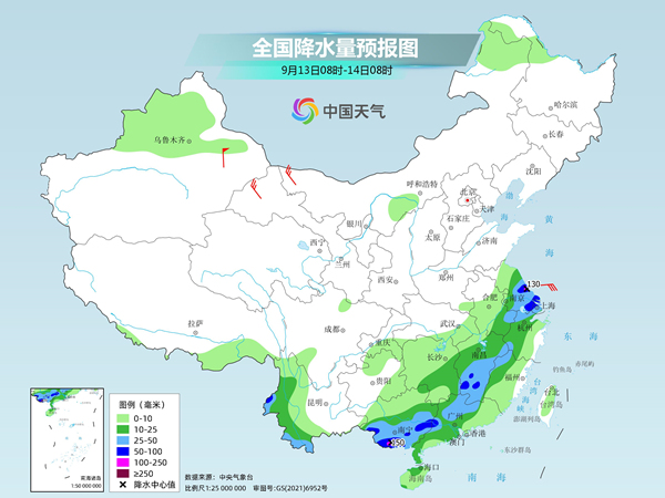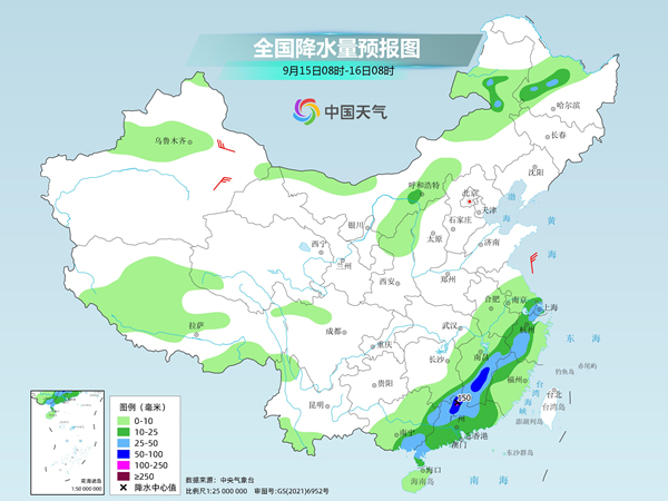 后天,內(nèi)蒙古東北部、黑龍江西南部、江南中東部和南部、華南大部等地部分地區(qū)有中到大雨,其中,江西中南部、廣東北部等地部分地區(qū)有暴雨或大暴雨(100~150毫米)。
