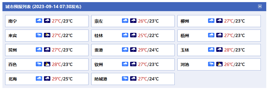 廣西氣象臺(tái)14日05時(shí)發(fā)布預(yù)報(bào):
