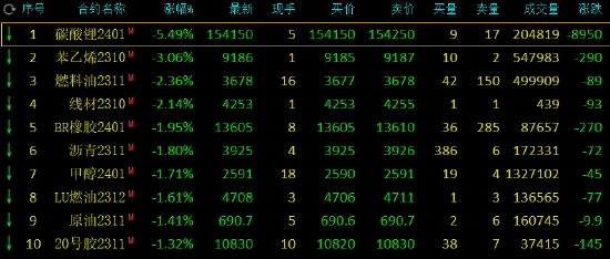午盤收盤,國內(nèi)期貨主力合約漲跌不一,燒堿漲近3%,菜粕漲近2%,紙漿、雞蛋(4648, 3.00, 0.06%)、生豬漲超1%。跌幅方面,碳酸鋰跌超5%,苯乙烯(EB)跌超3%,燃料油跌超2%。