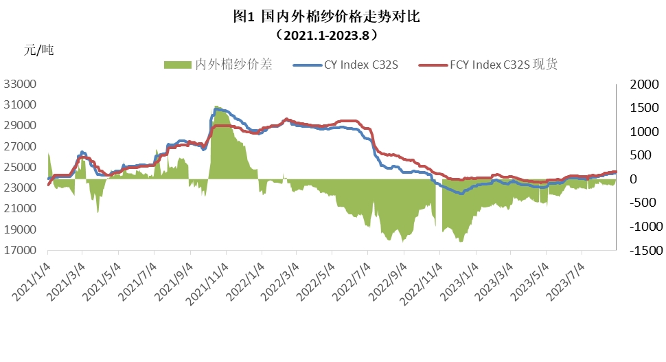二、內(nèi)外棉紗月度均價(jià)略有上漲