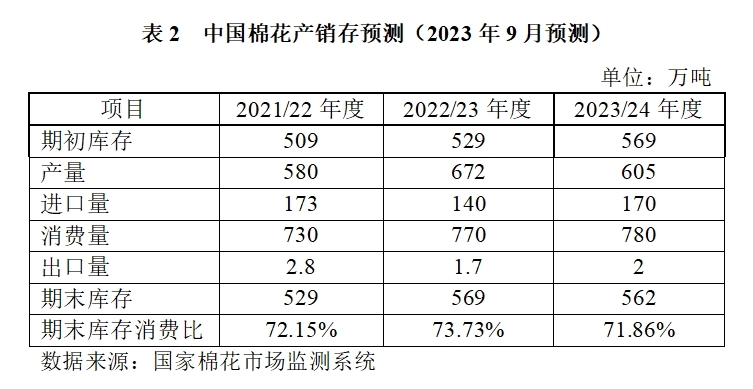 (三)2023年度中國棉花產(chǎn)銷存預(yù)測