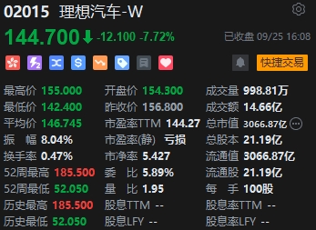 汽車(chē)股跌幅居前,理想跌近8%。消息面上,據(jù)香港聯(lián)交所股權(quán)披露,9月12日至15日期間,美團(tuán)首席執(zhí)行官兼理想汽車(chē)非執(zhí)行董事王興,連續(xù)4天減持理想汽車(chē),累計(jì)減持194.79萬(wàn)股,合共套現(xiàn)金額約3.11億港元。據(jù)悉,今年3月,王興10天9次減持理想汽車(chē),合計(jì)套現(xiàn)金額達(dá)4.2億港元。意味著王興年內(nèi)累計(jì)套現(xiàn)金額達(dá)到7.31億港元。