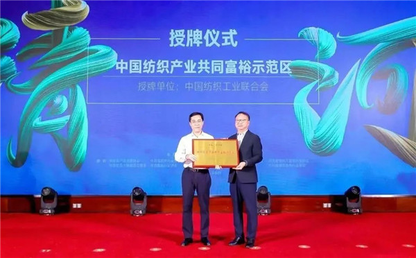 活動(dòng)現(xiàn)場(chǎng),中國紡織工業(yè)聯(lián)合會(huì)會(huì)長孫瑞哲為清河縣授牌“紡織服裝產(chǎn)業(yè)共同富裕示范區(qū)”;中國毛紡織行業(yè)協(xié)會(huì)會(huì)長劉家強(qiáng)為清河縣授牌“中國優(yōu)質(zhì)山羊絨制品供應(yīng)及出口基地”。隨后,大會(huì)為清河羊絨產(chǎn)業(yè)發(fā)展做出突出貢獻(xiàn)的企業(yè)家頒發(fā)“歷史功勛”和“杰出貢獻(xiàn)人物”榮譽(yù)稱號(hào)。