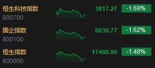 9月26日消息,港股三大指數(shù)齊跌,截至收盤,恒生指數(shù)(17466.898, -262.39, -1.48%)跌1.48%,報17466.9點(diǎn),恒生科技指數(shù)(3817.27, -65.63, -1.69%)跌1.69%,國企指數(shù)跌1.62%。盤面上,核心科技股集體下跌,京東集團(tuán)跌近3%,小米集團(tuán)、騰訊控股(300, -4.40, -1.45%)、美團(tuán)跌超1%,百度集團(tuán)逆勢漲近1%;汽車股普遍下跌,理想跌超4%,小鵬汽車、比亞迪股份(239.2, -8.60, -3.47%)跌超3%;內(nèi)房股和物管股齊跌,中國奧園(0.29, -0.04, -10.77%)復(fù)牌第二日跌近11%,融創(chuàng)中國(2.23, -0.16, -6.70%)跌超7%;蘋果概念股下挫,舜宇光學(xué)科技(53.1, -3.15, -5.60%)跌5.6%;影視股漲幅居前,歡喜傳媒(0.99, 0.12, 13.79%)漲近14%;今日新股途虎首日收漲5.36%。