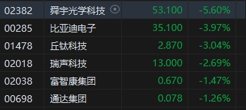 蘋果概念股下挫,舜宇光學(xué)科技跌5.6%。消息面上,據(jù)證券時報報道,深圳華強(qiáng)北人士透露,iPhone15系列手機(jī)“市場需求情況確實(shí)不理想。到現(xiàn)在現(xiàn)貨還是很多,基本沒什么人搶”。據(jù)了解,根據(jù)華強(qiáng)北多名第三方渠道報價,iPhone 15和15 Plus價格首發(fā)破發(fā)。麥格理研報指,手機(jī)行業(yè)的市場毛利率自2020年開始收窄,情況令人關(guān)注,若蘋果鏡頭毛利率沒有改善,舜宇盈利面對較大下調(diào)風(fēng)險,維持其“中性”評級。