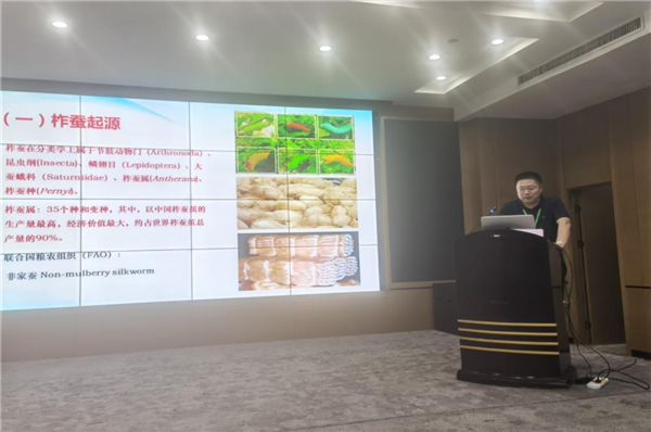 會議專題報告會部分由劉挺主持,秦利教授、李喜升研究員和遼寧省農(nóng)業(yè)科學(xué)院大連生物技術(shù)研究所都興范研究員、南陽師范學(xué)院段建平教授分別作了題為《柞蠶種質(zhì)資源利用》《中國柞蠶起源、傳播與高質(zhì)量發(fā)展》《柞蠶資源多元化利用關(guān)鍵技術(shù)及產(chǎn)業(yè)化》《大蠶桑背景下柞蠶基因資源鑒定——以河南一化性柞蠶為例》的學(xué)術(shù)報告。
