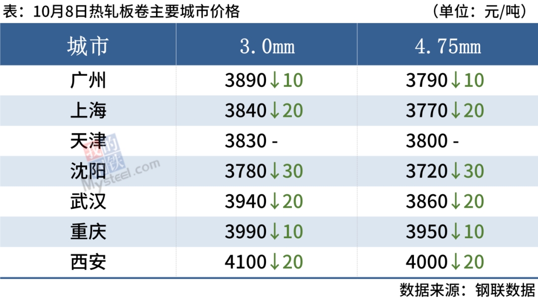 熱軋板卷:10月8日,全國24個主要城市4.75mm熱軋板卷均價3892元/噸,較上個交易日下跌12元/噸。熱卷(3754, -44.00, -1.16%)市場價格變化不大,整體庫存總量進(jìn)一步回升,同時成交相對一般,并無節(jié)后好轉(zhuǎn)得表現(xiàn)。長流程鋼廠以消耗庫存為主,獨立電爐企業(yè)節(jié)前已經(jīng)備貨完成,節(jié)日期間采購積極性不高。下游需求節(jié)中補庫情緒不佳,鋼廠發(fā)貨加速,投機(jī)需求尚未啟動,累庫或?qū)⒊掷m(xù),預(yù)計9日全國熱軋板卷價格或?qū)②吶踹\行。