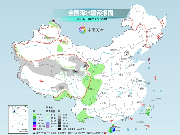 具體來(lái)看,中央氣象臺(tái)預(yù)計(jì),今天,新疆北疆北部和南疆南部山區(qū)、西藏北部和東部、青海等地的部分地區(qū)有小到中雪或雨夾雪,其中,新疆北疆北部、青海中部等地局地有大雪;甘肅南部、寧夏、四川西南部和盆地西部、云南東北部和南部、海南島、臺(tái)灣島等地的部分地區(qū)有小到中雨,其中海南島東部有大雨,局地暴雨。
