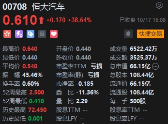 恒大汽車漲超38%。消息面上,10月16日晚間,中國恒大(0.29, 0.01, 3.57%)新能源汽車集團(tuán)有限公司發(fā)布公告稱,將進(jìn)一步延遲寄發(fā)債轉(zhuǎn)股及紐頓集團(tuán)(NWTN)認(rèn)購事項通函,恒大與認(rèn)購方因9月28日股份暫停買賣及近期恒大集團(tuán)發(fā)生的一系列變化,就擬議交易及擬議交易條款的潛在重新談判互相來往通信。