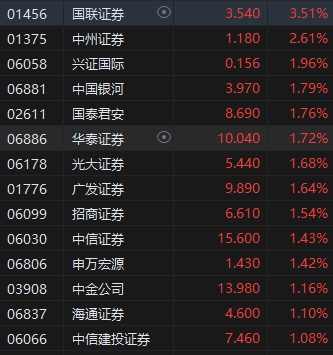 中資券商股普漲,國聯(lián)證券漲超3%。消息面上,繼上周中央?yún)R金增持四大國有銀行后,近日又有約10家央企紛紛出手回購公司股份、公布增持計劃,令短線市場做多信心提升,包括中國石化、中國移動(65.2, 0.35, 0.54%)、中國鐵建(4.59, 0.09, 2.00%)等在港上市的央企,這也讓市場對“中特估”行情的卷土重來有所期待。