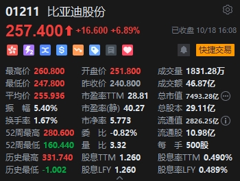 汽車股部分上漲,比亞迪漲近7%。消息面上,比亞迪股份(257.4, 16.60, 6.89%)預(yù)計2023年前三季度實現(xiàn)歸屬于上市公司股東的凈利潤205億-225億元,同比上升120.16%-141.64%。2023年第三季度,公司新能源汽車銷量持續(xù)創(chuàng)下歷史新高,穩(wěn)居全球新能源汽車銷量第一。