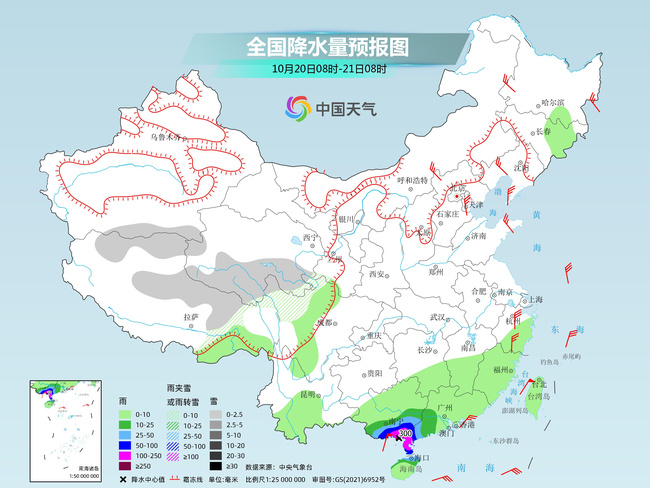 明天,新疆南疆盆地、西藏北部和東部、青海南部和西部、浙江中部、江南南部、川西高原北部、云南西南部、華南、臺灣島等地部分地區(qū)有小雪。華南南部等地部分地區(qū)有大到暴雨,其中,廣西東南部沿海、廣東西南部等地部分地區(qū)有大暴雨,廣西東南部沿海等地局地特大暴雨。