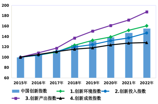 圖 2015—2022年中國(guó)創(chuàng)新指數(shù)及分領(lǐng)域指數(shù)(2015年=100)