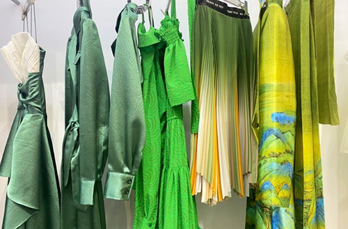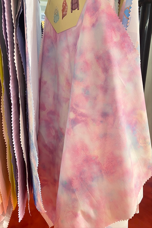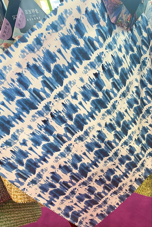 作為“盛澤織造”品牌企業(yè),蘇州羅曼羅蘭時尚集團(tuán)旗下面料品牌“莊面印象”此次參展帶來了抽象派風(fēng)格、扎染民族風(fēng)、小香風(fēng)等多種原創(chuàng)印花面料。莊面印象產(chǎn)品總監(jiān)李乾坤表示,公司印花始終圍繞“小批量、定制快反”進(jìn)行原創(chuàng)發(fā)行、定制化反,主要解決服裝行業(yè)小批量快反的三個痛點(diǎn),一是小批量定制化,百萬花型可供開發(fā)選樣參考,花型確認(rèn)可做到一天打出成品樣布;二是減少商家?guī)齑?,小批量定制化的快反生產(chǎn)可以做到5—7天出貨;三是快時尚定制,可以做到1—3天出樣。