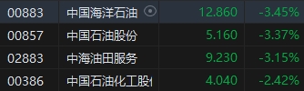 石油股跌幅居前,三桶油齊挫,中石油跌近4%。消息面上,國有石油公司陸續(xù)發(fā)布三季報(bào),中國石化和中國海油的經(jīng)營業(yè)績均出現(xiàn)增速放緩的態(tài)勢(shì)。中國海油第三季度實(shí)現(xiàn)凈利潤338.84億元,同比下降8.13%;實(shí)現(xiàn)營收1147.53億元,同比增長5.48%;前三季度實(shí)現(xiàn)凈利潤976.45億元,同比下降10.23%;實(shí)現(xiàn)營收3068.17億元,同比下降1.39%。中國石化前三季度公司實(shí)現(xiàn)營業(yè)總收入24699.41億元,同比增長0.68%;歸母凈利潤529.66億元,同比下降7.47%。