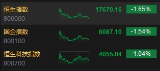 11月7日消息,港股三大指數低開低走,截至收盤,恒生指數(17670.16, -296.43, -1.65%)跌1.65%,報17670.16點,恒生科技指數(4055.84, -42.74, -1.04%)跌1.04%,國企指數跌1.54%。盤面上,核心科技股普跌,京東、阿里巴巴跌超2%,百度、美團、騰訊、快手跌超1%,小米集團逆勢漲近2%;造車新勢力走勢分化,蔚來跌超5%,零跑汽車(34.2, 2.50, 7.89%)漲近8%;內房股和物管股普遍下跌,恒大物業(yè)(0.495, 0.05, 11.24%)尾盤逆勢拉升11%;內險股齊挫,中國太保(17.64, -1.38, -7.26%)跌超7%;生物醫(yī)藥股逆勢上漲,三葉草生物漲超18%;煤炭、影視、電子零件等板塊小幅上漲。