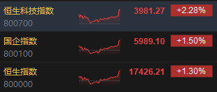 11月13日消息,港股三大指數(shù)尾盤拉升,截至收盤,恒生指數(shù)(17446.35, 20.14, 0.12%)漲1.3%,報(bào)17426.21點(diǎn),恒生科技指數(shù)(3954.03, -27.24, -0.68%)漲2.28%,國(guó)企指數(shù)漲1.5%。盤面上,核心科技股普遍上漲,快手跌漲超5%,嗶哩嗶哩、百度集團(tuán)漲超3%,騰訊、網(wǎng)易漲超2%;內(nèi)房股集體低迷,融創(chuàng)中國(guó)(2.01, -0.05, -2.43%)跌超5%;汽車股多數(shù)上漲,華晨中國(guó)漲超6%;SaaS概念股全天強(qiáng)勢(shì),中國(guó)軟件國(guó)際(6.48, -0.02, -0.31%)漲近11%;蘋果概念股活躍,比亞迪電子(37.95, 0.75, 2.02%)漲超6%;影視股上漲,阿里影業(yè)(0.54, -0.03, -5.26%)漲超5%;石油股齊漲,中石油、中海油(12.78, -0.12, -0.93%)漲超2%;旅游、餐飲、電子零件等板塊飄紅。