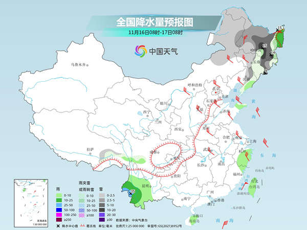 明天,內(nèi)蒙古東北部、東北地區(qū)大部等地部分地區(qū)有小到中雪或雨夾雪,其中,黑龍江中東部、吉林東部等地部分地區(qū)有大到暴雪(10~15毫米)。黑龍江東北部、浙江中東部、福建東北部、云南中西部等地部分地區(qū)有小到中雨,其中,云南西南部局地有大雨(25~35毫米)。