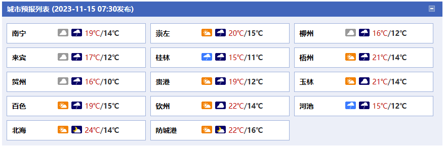 廣西氣象臺(tái)15日05時(shí)發(fā)布預(yù)報(bào):