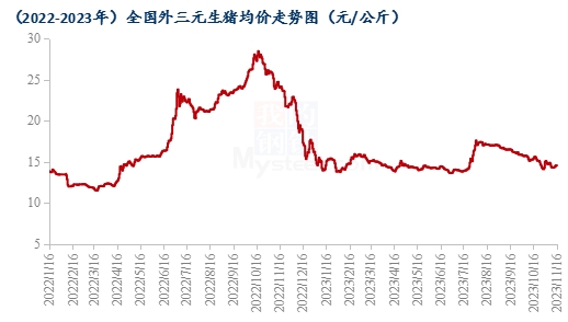 圖1  2022-2023年全國(guó)外三元生豬均價(jià)走勢(shì)圖