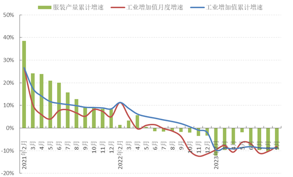圖1 2023年1-9月服裝行業(yè)生產(chǎn)增速情況
