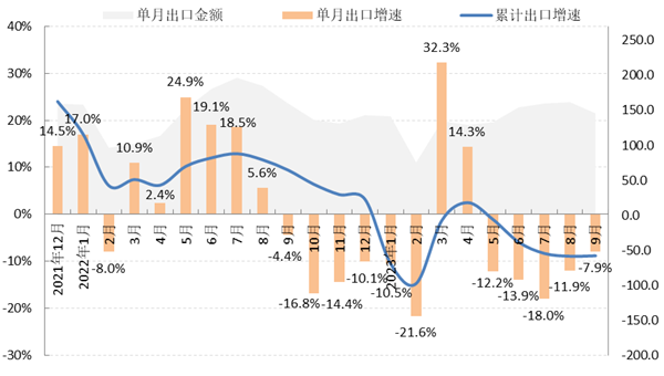 圖3 2023年1-9月服裝及衣著附件出口情況