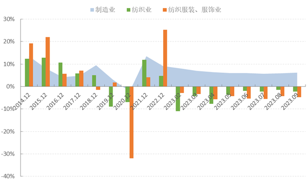 圖5 2023年1-9月服裝行業(yè)固定資產(chǎn)投資增速情況
