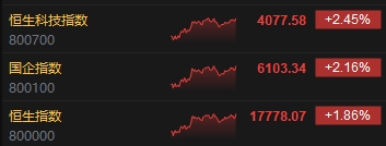 11月20日消息,港股三大指數(shù)低開高走,截至收盤,恒生指數(shù)(17778.07, 0.00, 0.00%)漲1.86%,報17778.07點(diǎn),恒生科技指數(shù)(4077.58, 0.00, 0.00%)漲2.45%,國企指數(shù)漲2.16%。盤面上,核心科技股集體上漲,騰訊控股(326.6, 0.00, 0.00%)、京東集團(tuán)漲超3%,嗶哩嗶哩、快手、網(wǎng)易漲超2%;汽車股普遍上漲,小鵬汽車漲超5%領(lǐng)銜;內(nèi)房股攜手物管股上漲,融創(chuàng)中國(2.33, 0.00, 0.00%)漲近6%,融創(chuàng)服務(wù)(2.18, 0.00, 0.00%)漲近7%;半導(dǎo)體概念股漲幅居前,中芯國際(22.4, 0.00, 0.00%)漲超3%;燃?xì)?、石油、煤炭等能源股漲幅明顯,新奧能源(59.2, 0.00, 0.00%)漲近5%;蘋果概念股逆勢下跌,瑞聲科技(19.58, 0.00, 0.00%)跌超4%。
