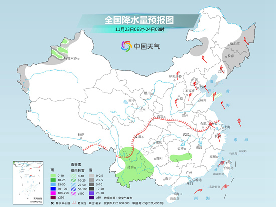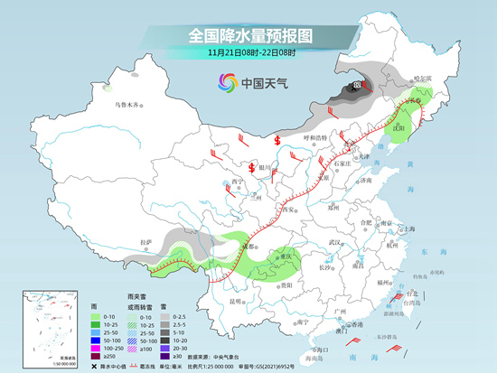 后天,新疆西部、內(nèi)蒙古東部、東北地區(qū)中東部、山東半島等地部分地區(qū)有小雪或雨夾雪,局地有中雪。湖南南部、四川南部、云南大部等地部分地區(qū)有小雨。