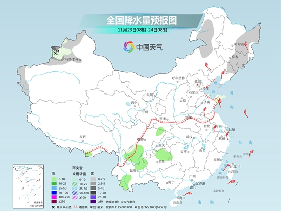 今天,隨著寒潮主體南下,上述地區(qū)的降雪天氣將明顯縮減,其中內(nèi)蒙古東北部、黑龍江中東部、吉林中東部、新疆北疆西部和伊犁河谷、南疆西部高海拔地區(qū)以及山東半島北部等地部分地區(qū)有小到中雪或雨夾雪,其中,新疆伊犁河谷局地有大雪。陜西南部、四川盆地東北部和南部、貴州中北部、云南東北部和西南部等地部分地區(qū)有小雨。
