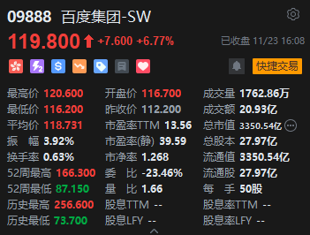 核心科技股多數(shù)上漲,百度集團(tuán)業(yè)績(jī)利好持續(xù)發(fā)酵,股價(jià)漲6.77%。消息面上,百度發(fā)布2023年三季度財(cái)報(bào),第三季度營(yíng)收344億元人民幣,同比增長(zhǎng)6%,超出市場(chǎng)預(yù)估的342.1億元;歸屬于百度的凈利潤(rùn)達(dá)73億元,同比增長(zhǎng)23%。另外,目前文心一言用戶(hù)數(shù)已達(dá)7000萬(wàn)。