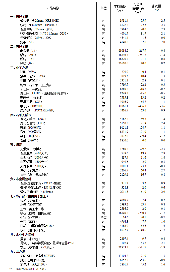 2023年11月中旬流通領(lǐng)域重要生產(chǎn)資料市場(chǎng)價(jià)格變動(dòng)情況