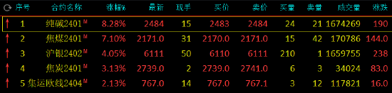 午盤收盤,國內(nèi)期貨主力合約漲跌不一。純堿漲超8%,焦煤(2160, 44.00, 2.08%)漲超7%,滬銀漲超4%,焦炭(2733, 17.00, 0.63%)漲超3%,丁二烯橡膠(13910, -45.00, -0.32%)(BR)、集運(yùn)指數(shù)(歐線)漲超2%。跌幅方面,碳酸鋰封跌停板,跌幅6.98%;生豬跌超5%,滬鎳(123380, -920.00, -0.74%)跌超4%,蘋果(9153, 141.00, 1.56%)、滬鉛(16135, -160.00, -0.98%)跌超2%。