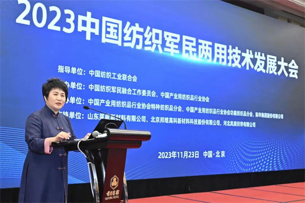 11月23日,2023中國紡織軍民兩用技術(shù)發(fā)展大會在北京召開。會議由中國紡織工業(yè)聯(lián)合會指導(dǎo),中國紡織軍民融合工作委員會、中國產(chǎn)業(yè)用紡織品行業(yè)協(xié)會主辦,中國產(chǎn)業(yè)用紡織品行業(yè)協(xié)會特種紡織品分會、中國產(chǎn)業(yè)用紡織品行業(yè)協(xié)會功能紡織品分會、際華集團股份有限公司承辦,山東萊威新材料有限公司、北京邦維高科新材料科技股份限公司、河北鳳展織帶有限公司支持。