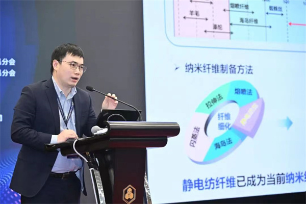 東華大學(xué)紡織科技創(chuàng)新中心副主任、教授斯陽在“超輕超彈納米纖維氣凝膠的三維構(gòu)建及功能化應(yīng)用研究”主題報告中,從研究背景角度介紹了纖維材料的重要發(fā)展方向、靜電紡納米纖維材料的三維體型構(gòu)建、納米纖維氣凝膠構(gòu)建新思路、及超輕超彈纖維氣凝膠研究思路,并對高分子納米纖維氣凝膠、碳納米纖維氣凝膠、陶瓷納米纖維氣凝膠的相關(guān)性能和特點進行講解。