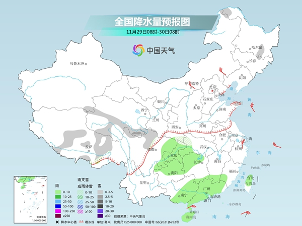 今天至12月1日,較強冷空氣自北向南影響我國華北及以南大部地區(qū),氣溫普遍下降4~6℃,內(nèi)蒙古西部、西北地區(qū)東南部、黃淮南部、江淮、江漢及浙江、湖南、貴州、廣西等地部分地區(qū)降溫8~10℃,局地10℃以上
