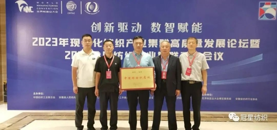 9月21日,在安徽省合肥市舉辦的“2023年現(xiàn)代化紡織產(chǎn)業(yè)集群高質(zhì)量發(fā)展論壇暨2023全國紡織產(chǎn)業(yè)集群工作會議”上,中國紡織工業(yè)聯(lián)合會授予冠縣“中國棉紡織名城”稱號。