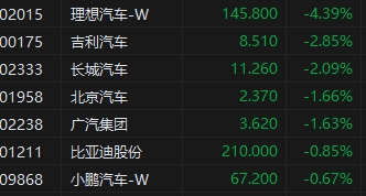 汽車股普跌,理想汽車跌超4%領(lǐng)跌。乘聯(lián)會數(shù)據(jù)顯示,11月1-26日,乘用車市場零售138.9萬輛,同比增長17%,較上月同期下降12%,今年以來累計零售1865.6萬輛,同比增長4%。11月1-26日,新能源車市場零售56.3萬輛,同比增長33%,較上月同期下降7%,今年以來累計零售651.7萬輛,同比增長34%。11月20至26日當(dāng)周,全國乘用車市場日均零售5.9萬輛,同比增長11%,但較上周下跌24%。