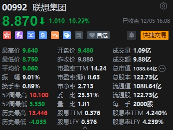 聯(lián)想集團(tuán)挫逾10%領(lǐng)跌科指成分股。根據(jù)香港聯(lián)交所披露的文件,楊元慶于11月28日以每股均價(jià)9.7892港元售出聯(lián)想集團(tuán)1,141.8萬(wàn)股普通股股份,價(jià)值約1.12億港元。另外,其于11月29日以每股均價(jià)9.6702港元售出858.2萬(wàn)股普通股股份,價(jià)值約8298.97萬(wàn)港元;11月30日以每股均價(jià)9.6846港元售出600萬(wàn)股普通股股份,價(jià)值約5810.76萬(wàn)港元;及12月1日以每股均價(jià)9.6506港元售出600萬(wàn)股普通股股份,價(jià)值約5790.36萬(wàn)港元。