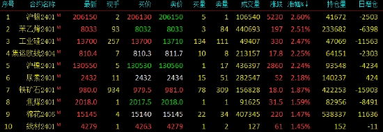 2023年12月6日,期市收盤,國內(nèi)期貨主力合約漲跌不一,滬錫(206590, 4650.00, 2.30%)、苯乙烯(EB)、工業(yè)硅、集運(yùn)指數(shù)(歐線)、滬鎳(127940, 1300.00, 1.03%)漲超2%。跌幅方面,棕櫚(6736, -254.00, -3.63%)油跌超3%,菜籽油、蘋果(8183, -79.00, -0.96%)、碳酸鋰跌超2%。