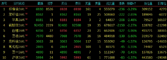 國內(nèi)期貨主力合約漲跌不一 棕櫚油跌超3%