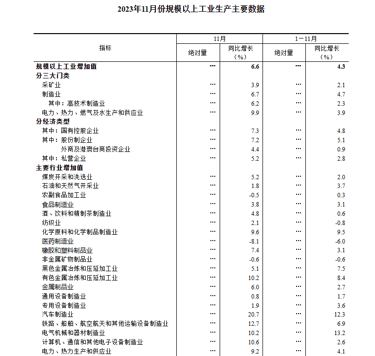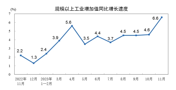 2023年11月份規(guī)模以上工業(yè)增加值增長6.6%