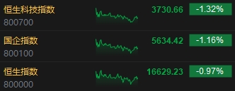12月18日消息,港股三大指數(shù)低開低走,截至收盤,恒生指數(shù)(16629.23, 0.00, 0.00%)跌0.97%,報16629.23點,恒生科技指數(shù)(3730.66, 0.00, 0.00%)跌1.32%,國企指數(shù)跌1.16%。盤面上,核心科技股普跌,美團(tuán)跌超2%,網(wǎng)易、百度跌近2%,騰訊跌近1%,阿里巴巴飄紅;汽車股齊挫,小鵬汽車遭阿里減持股價跌超6%;內(nèi)房股普跌,綠城中國(7.45, 0.00, 0.00%)跌超5%;海運(yùn)股上漲,海豐國際(13.54, 0.00, 0.00%)漲近15%;煤炭股逆勢上漲,南南資源(0.139, 0.00, 0.00%)、南戈壁(2.03, 0.00, 0.00%)漲超19%;東方甄選(32, 0.00, 0.00%)大漲近22%。