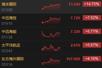 海運(yùn)股齊漲,海豐國際漲近15%。消息面上,近期越來越多船只在行至紅海水域時遭到也門胡塞武裝襲擊,促使全球主要航運(yùn)公司暫時避開該區(qū)域。華創(chuàng)證券表示,本次事件或明顯增加保險費率、繞行成本等貨輪成本,建議近期關(guān)注該區(qū)域形勢及運(yùn)價走勢。參考過往蘇伊士運(yùn)河堵塞復(fù)盤,原油、成品油運(yùn)價反應(yīng)更為明顯??紤]船只繞行好望角,運(yùn)距拉長,遠(yuǎn)距離運(yùn)輸?shù)腣LCC(超大型油輪)或受益,推薦中遠(yuǎn)海能(7.32, 0.00, 0.00%)。