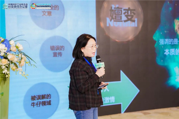 前進牛仔CEO王宗文作為制造企業(yè)代表分享了她的經(jīng)驗。她表示,牛仔行業(yè)經(jīng)過多年技術(shù)發(fā)展,已擺脫高耗水高污染的標簽,且完全有潛力成為最環(huán)保的面料之一,這主要基于其原料生物基、短流程制造、化學品少、常溫染色、洗水技術(shù)變革、洗滌微纖少等特點。當談到企業(yè)ESG管理經(jīng)驗時,她提到前進牛仔近年來主要在可持續(xù)采購、設(shè)備開發(fā)、產(chǎn)品研發(fā)、能源管理、廢物治理、智能化改造幾個方面發(fā)力,如持續(xù)提升可持續(xù)纖維使用比例、使用環(huán)保染色設(shè)備、實行54項技改活動、實現(xiàn)年循環(huán)用水46萬噸,數(shù)字孿生技術(shù)實現(xiàn)車間水電氣數(shù)據(jù)實時跟蹤等。