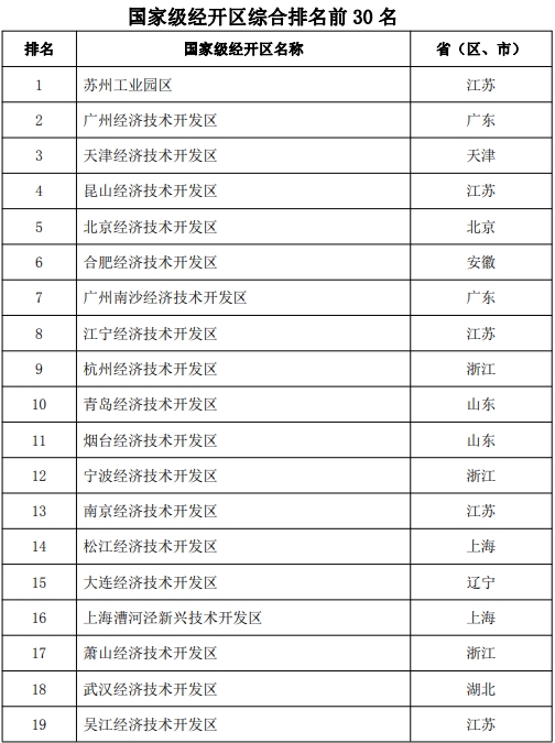 2022年度國家級經(jīng)開區(qū)綜合發(fā)展水平考核評價綜合排名、分地區(qū)排名及部分單項(xiàng)排名情況
